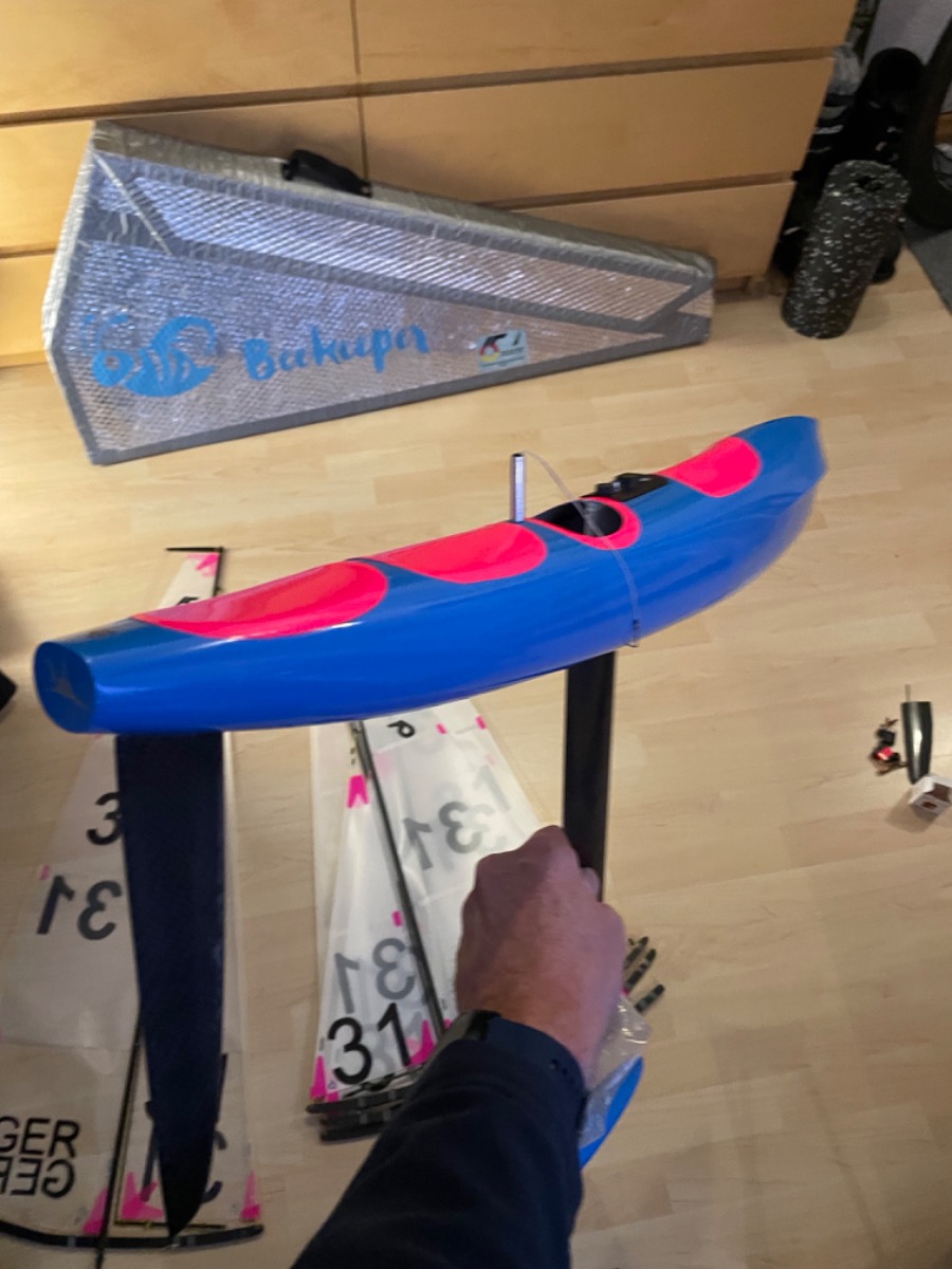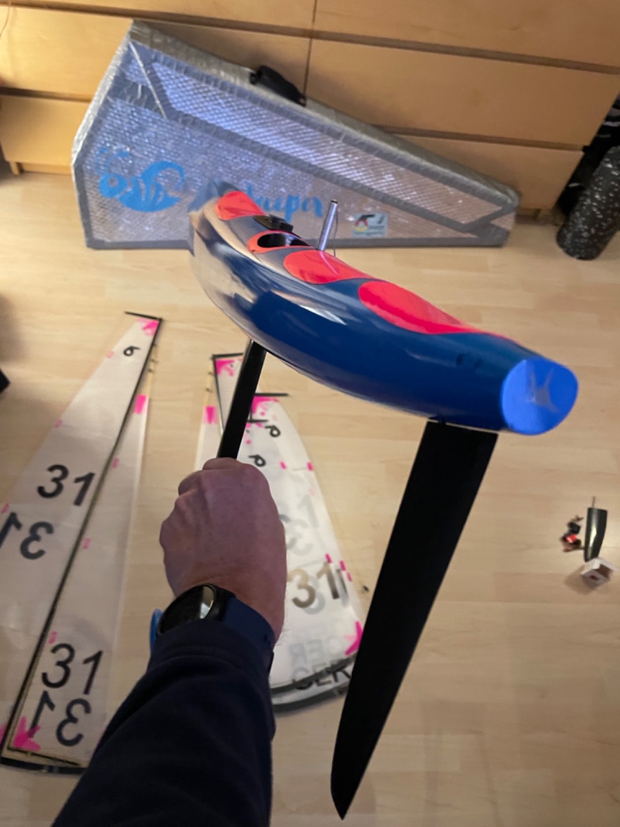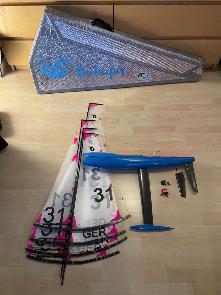 ich verkaufe meine Orka MKII, GFK-Rumpf, blau lackiert, gebaut von Patrick Schiller, komplett mit HV-digital Ruder- und Segelverstellservo und den selben Ersatzservos, Ersatzruderblatt, 4 Riggs (A, B, C, D) von Molinea, Ruderservo, Riggtasche für bis zu 5 Segel.