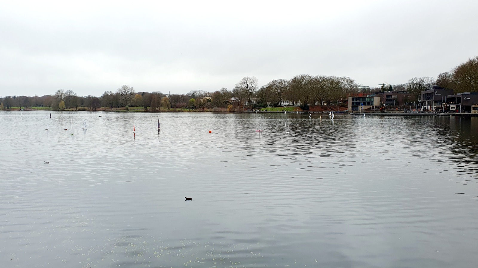 5,5 kilometer einmal um den kompletten Aasee rum, spazieren, und gleichzeitig aufs Boot schauen.