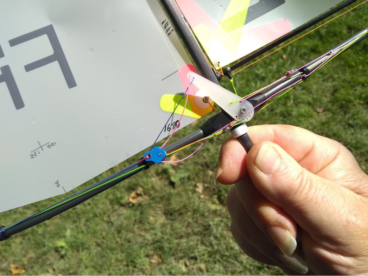 Eine GIZMO ist eine Verstellmöglichkeit für das Profil der Segel und den Fockspalt in Verbindung mit der Segelwinde, also ohne ein zusätzliches Servo.