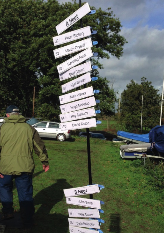 in England – Manor Park, beobachten konnte. Die Namen der Segler wurden auf Wäscheklammern geschrieben und entsprechend der Einteilung an einer Angelrute befestigt. Nach jedem Lauf werden die Aufsteiger entsprechend umgeklemmt und fertig. Einfacher geht’s, glaube ich, nicht.