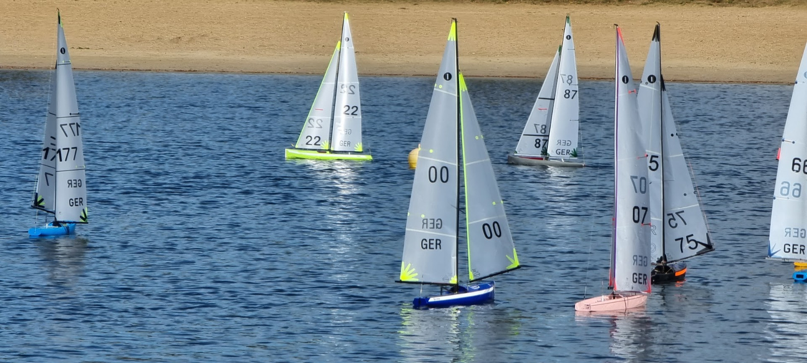 Schon am ersten Tag zeichnete sich eine deutliche Dominanz von Torsten Fildebrandt ab, der auf den zweitplatzierten Max, schon 27 Punkte Vorsprung herausfahren konnte. Am Sonntag wechselten wir bei Südwind und schönstem Sonnenschein auf den kleinen See. Der Wind war auch noch akzeptabel, allerdings waren die Verwirbelungen derart heftig, dass ein faires Segeln eigentlich nicht mehr möglich war. Mit viel Wohlwollen segelten wir dann noch vier Wettfahrten, aber mehr war beim besten Willen nicht drin. Torti beendete dann gegen ca. 13 Uhr die Regatta, was eine gute Entscheidung war. Insgesamt war die Leistung der gesamten Wettfahrtleitung einwandfrei. Torti hatte das Geschehen sehr souverän im Griff und auch die Helfer haben einen hervorragenden Job gemacht!! Wir würden uns freuen Euch wiederzusehen!