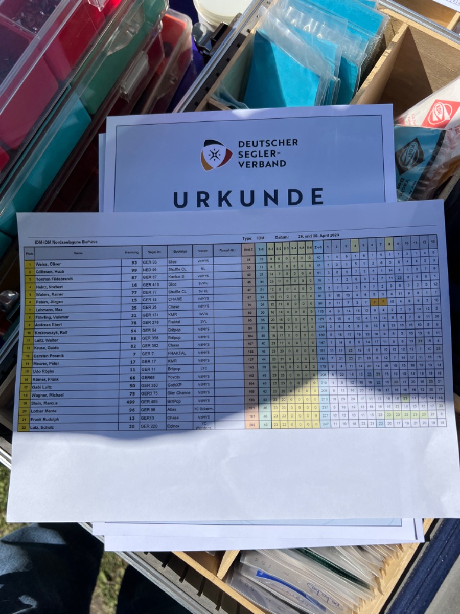 Unglaublich eigentlich für die Nordseeküste. Erst gegen Mittag setzte sich ein einigermaßen segelbarer Wind durch, was noch zu 2 weiteren Wettfahrten genutzt wurde.