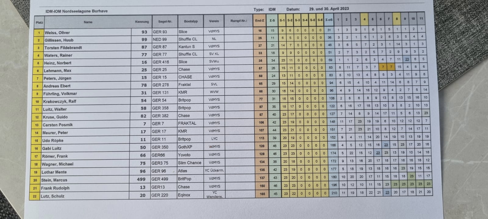 Es wurde sauber gesegelt, die Kontakte wurden immer direkt aufgelöst. Die üblichen Verdächtigen waren meist vorn anzutreffen, wobei das Pendel immer mehr zugunsten von Olli ausschlug.