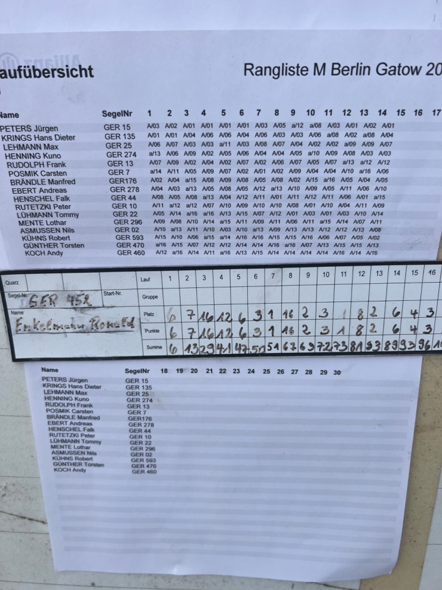 Bernhard hat immer zwei 2 Läufe segeln lassen,