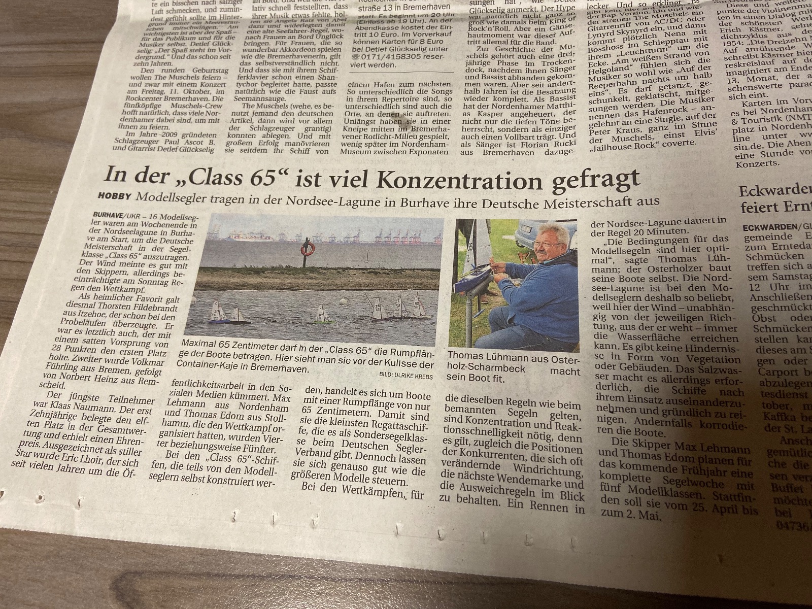 Mein dritter Platz ist, glaube ich, auch noch etwas anderem geschuldet. Wenn ich das richtig überblicke, hatte ich das einzige Boot, das so gut wie kein Salzwasser im Rumpf hatte und damit auch keine Ausfälle beklagen musste. Wenn man nach Burhave fährt, sollte man wissen, was auf einen zukommen kann. Das wir Samstag teilweise nur mit 8 oder 9 Schiffen am Start waren, ist schon erschreckend. Meist sah es im Fahrerlager nicht nach einer DM aus, sondern nach einer Bastelveranstaltung.