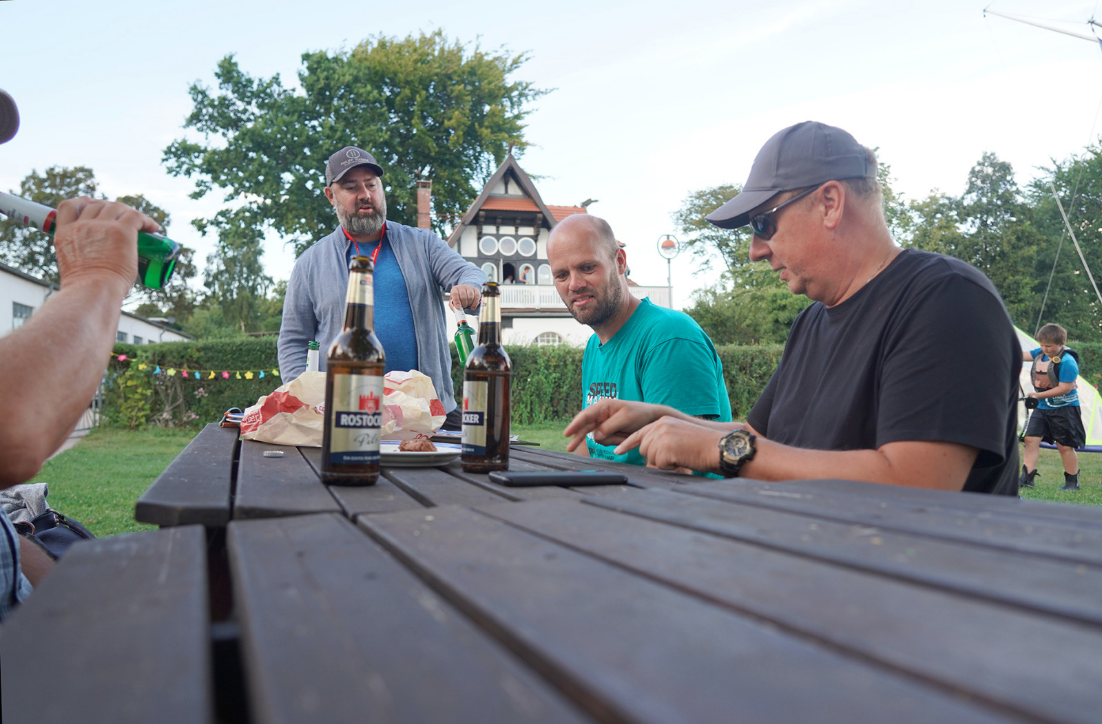Das „Naumann Familienmatchrace“ war diesmal spannender als sonnst. Das „Sensibelchen“, die türkise NUKITE, hat nach einigen Umbaumaßnahmen (Mastspur nach vorne versetzt, Kielgewichte optimiert, usw.) nun einen schönen Trimm und war in diesen Bedingungen Klaas seiner blau-weißen Manta’17 ebenbürtig. Am Ende waren wir zwei punktgleich, jedoch ging der TieBreak an den Junior ... also doch das gewohnte Bild in der Endrangliste „Junior vor Papa“