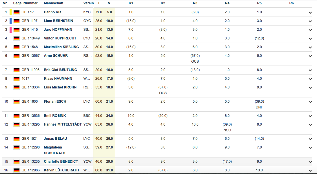 Der Junior hatte bei diesen Bedingungen auch richtig Freude und matchte parallel im Opti. Alle fünf Rennen in den Top10 mit einem Laufsieg bei 83 Startern. Am Ende war es vorne sehr eng und er beendete als 8ter mit 4 Punkten Rückstand zum Podium und 3ter aus dem Bundesland.