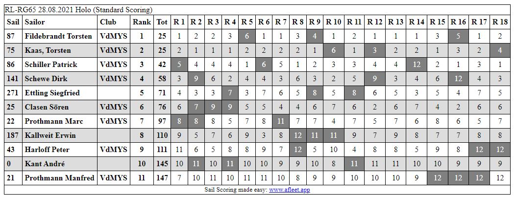 1. Torsten Fildebrandt: Was soll man da noch schreiben? Er kann segeln, hat sehr gutes Material und riecht die Dreher! Seine nagelneue Manta 21 hatte am Anfang ein paar Probleme. Nach einem Rigg-Wechsel lief sie deutlich besser und nach jedem Lauf wurde getrimmt und das Maximum heraus geholt. Gutes Auge, analytisches Vorgehen und konzentriert. So gewinnt man.