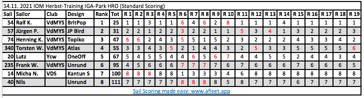 Aktuell segeln die Kollegen noch. Ich hatte nur ein Stündchen Zeit und bin ein paar Rennen mitgesegelt. Schöne Bedingungen mit Ostwind für A leicht bis medium powered, als ich los musste auch A mit Druck. Kurzzeitig waren acht Boote an der Startlinie. Torsten (GER 340) wird vermutlich nachher noch ein paar Zeilen schreiben. Für ihn ist es die erste Session als Organisator und Segler in Personalunion. Anbei ein paar Fotos … für die große Linse war heute kein Wetter. Das lohnte im Novembergrau nicht.