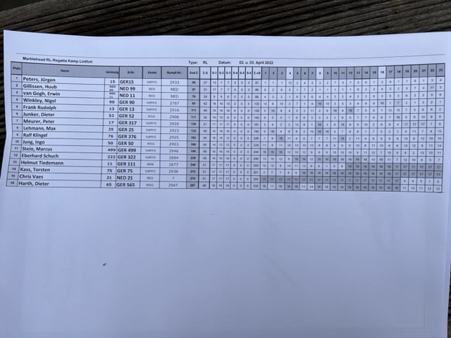 Wir hatten um 16 Uhr 15 - 18 Läufe gesegelt, dann hat Dieter sich entschieden Schluss zu machen.