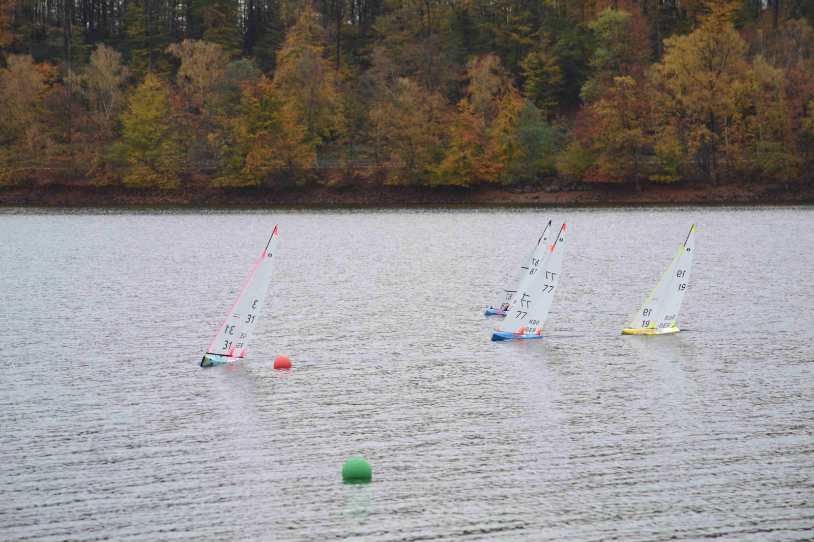 Norbert kam mit diesen Bedingungen am besten zurecht und segelte souverän vorne, während Peter und Rainer ihm dicht auf den Fersen waren.