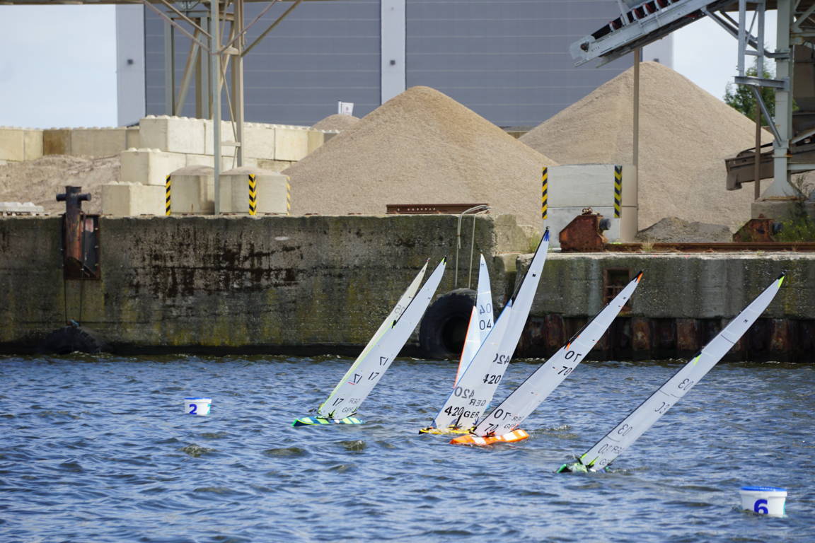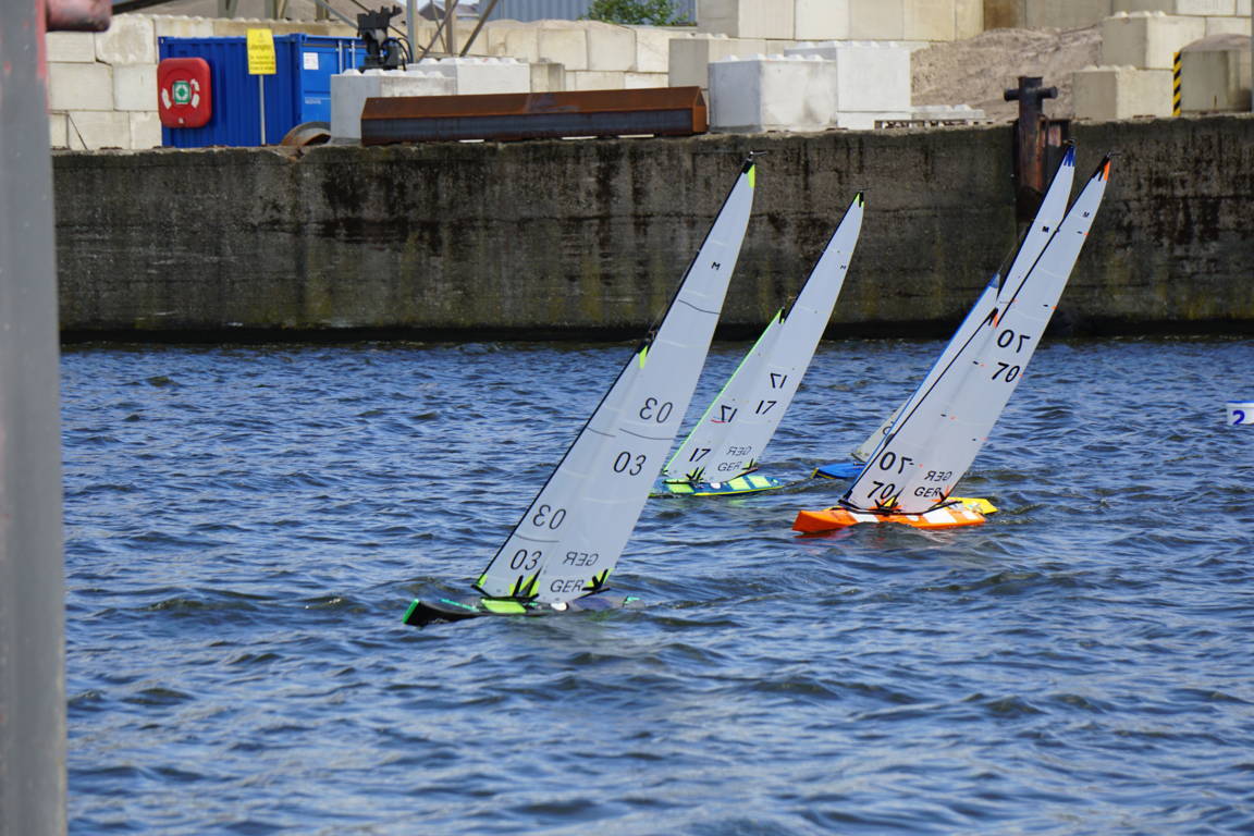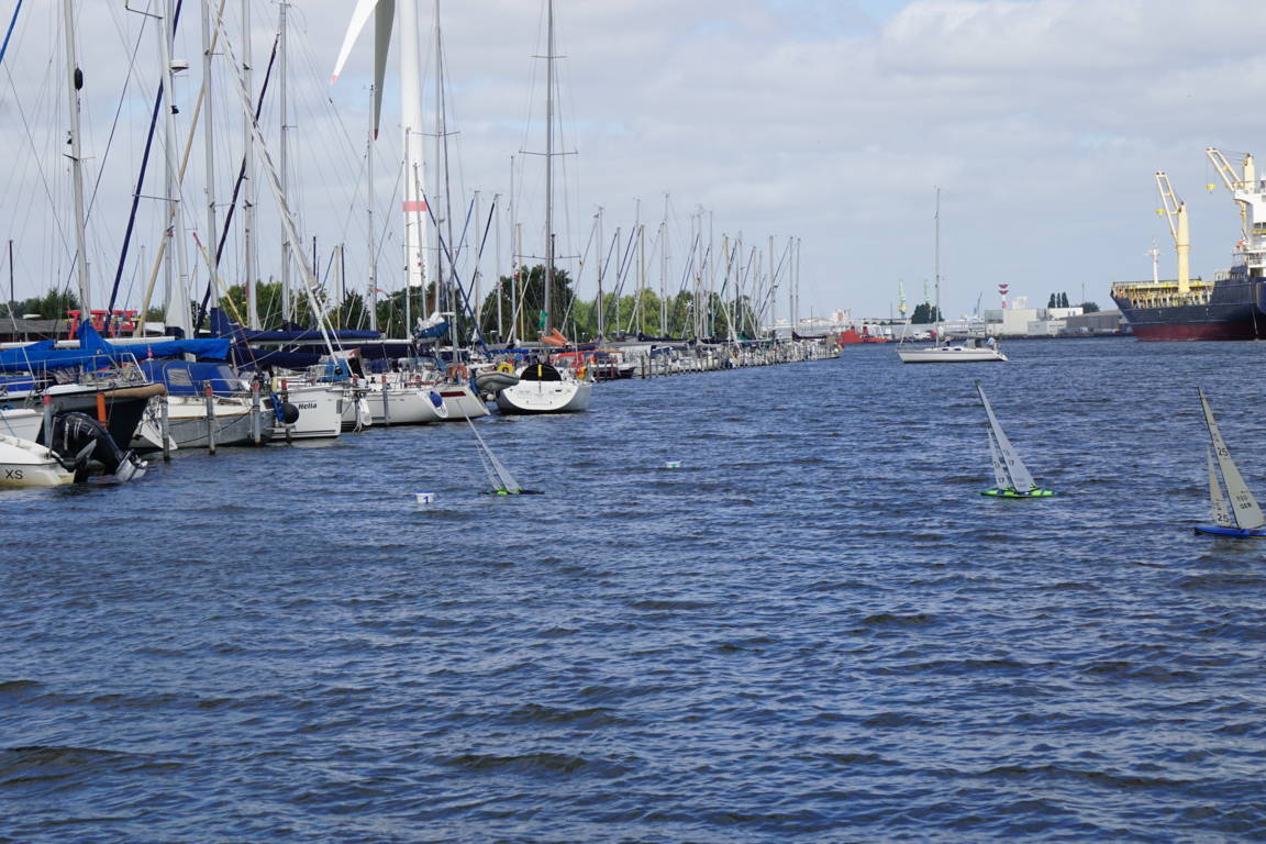 Danach wurde mit 7 von 10 frisch ans Werk gegangen und noch 13 Läufe bis Mittags gesegelt. Wind war ähnlich zum Vortag etwas leichter, somit wurde nur noch vereinzelt das B rigg gesichtet. Dafür war im Hafenbecken gut mehr los, WP hat 6 Boote rausgeholt und zwischendurch durfte auch noch die gegenüberliegende Frachtschifffahrt um- und anlegen.