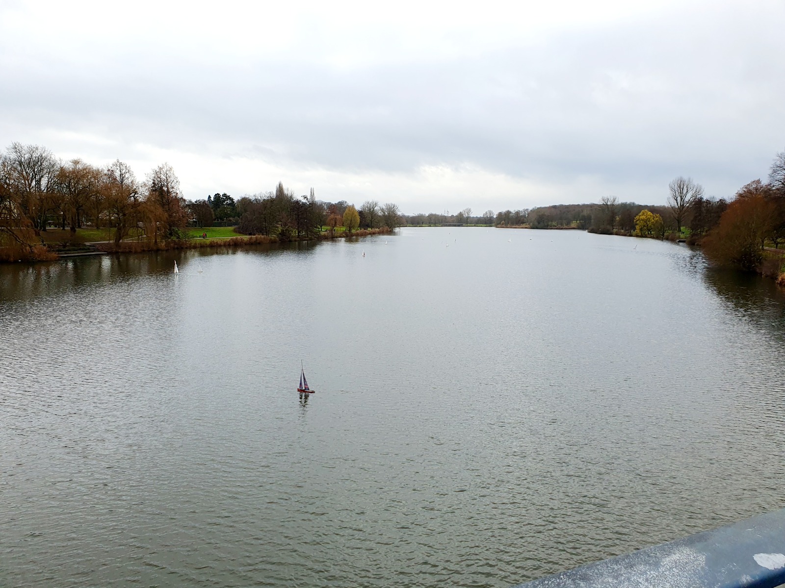 5,5 kilometer einmal um den kompletten Aasee rum, spazieren, und gleichzeitig aufs Boot schauen.