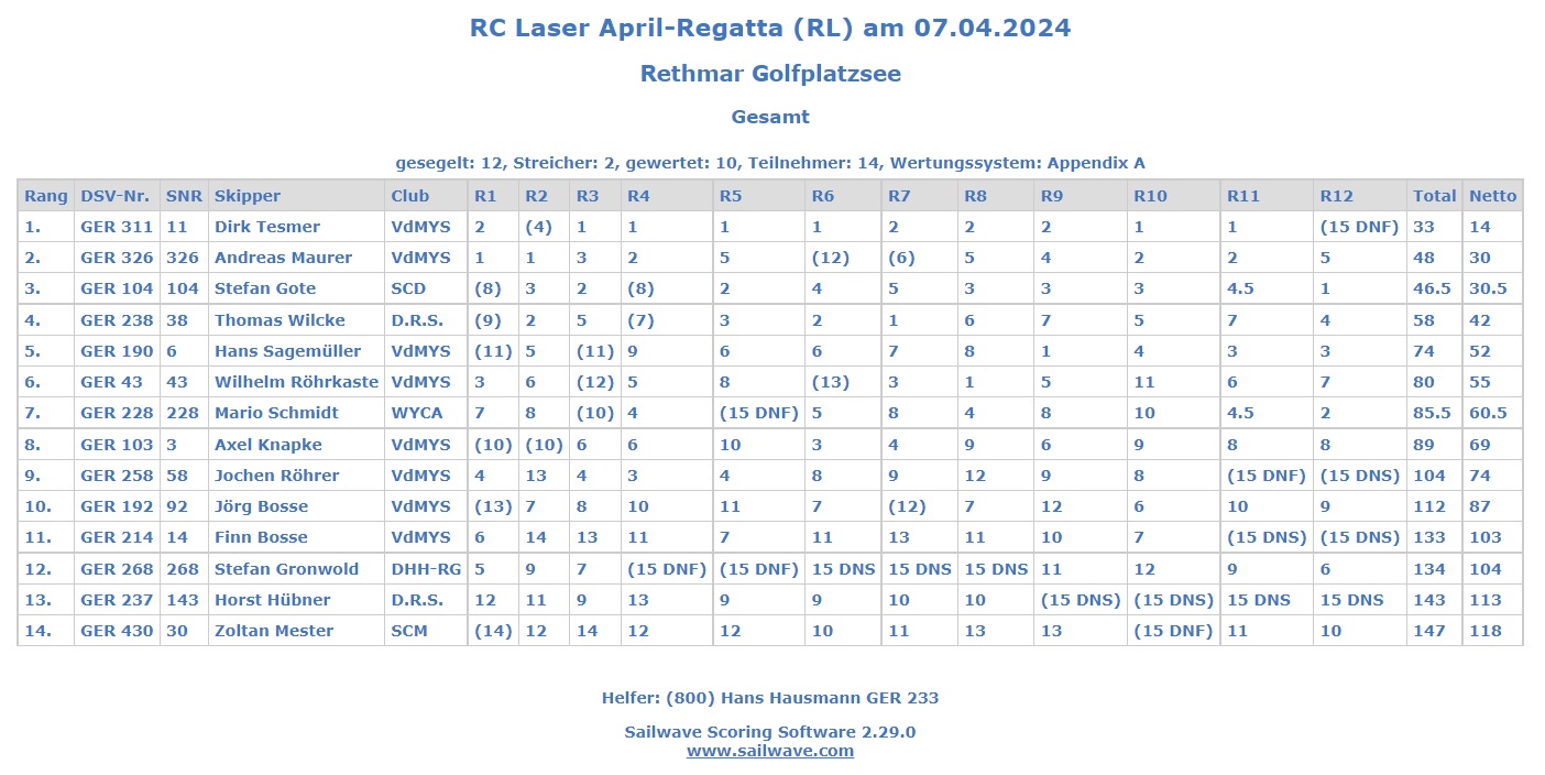 RC-Laser Rangliste am 7.April Rethmar wurde erstellt von GER233