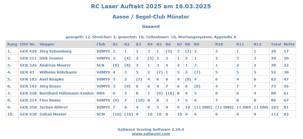 Bericht zum RC Laser Auftakt 2025 am Aasee in Münster.
