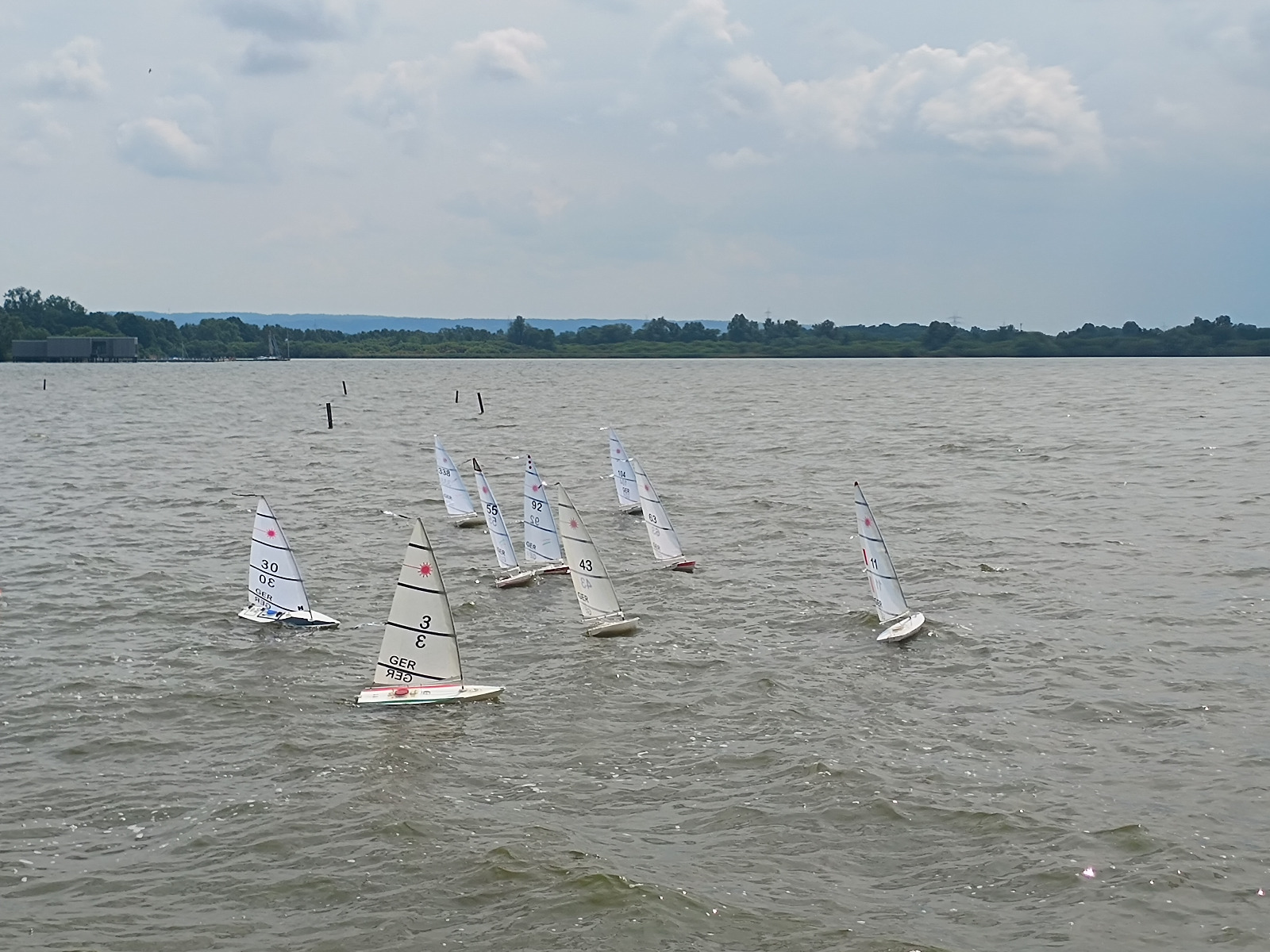 Pfingstmontag trafen sich neun hochmotivierte RC Laser Segler am Dümmer See. Das Wetter passte, Sonnenschein, kräftiger Wind aus Süd West und die Regenwolken drohten nur. Der Wind behielt seine Richtung über den ganzen Tag bei, allerdings mit unterschiedlichen Windstärken. Da war Taktik bei der Riggwahl gefragt. Gut, dass der Laser sich schnell umringen lässt.