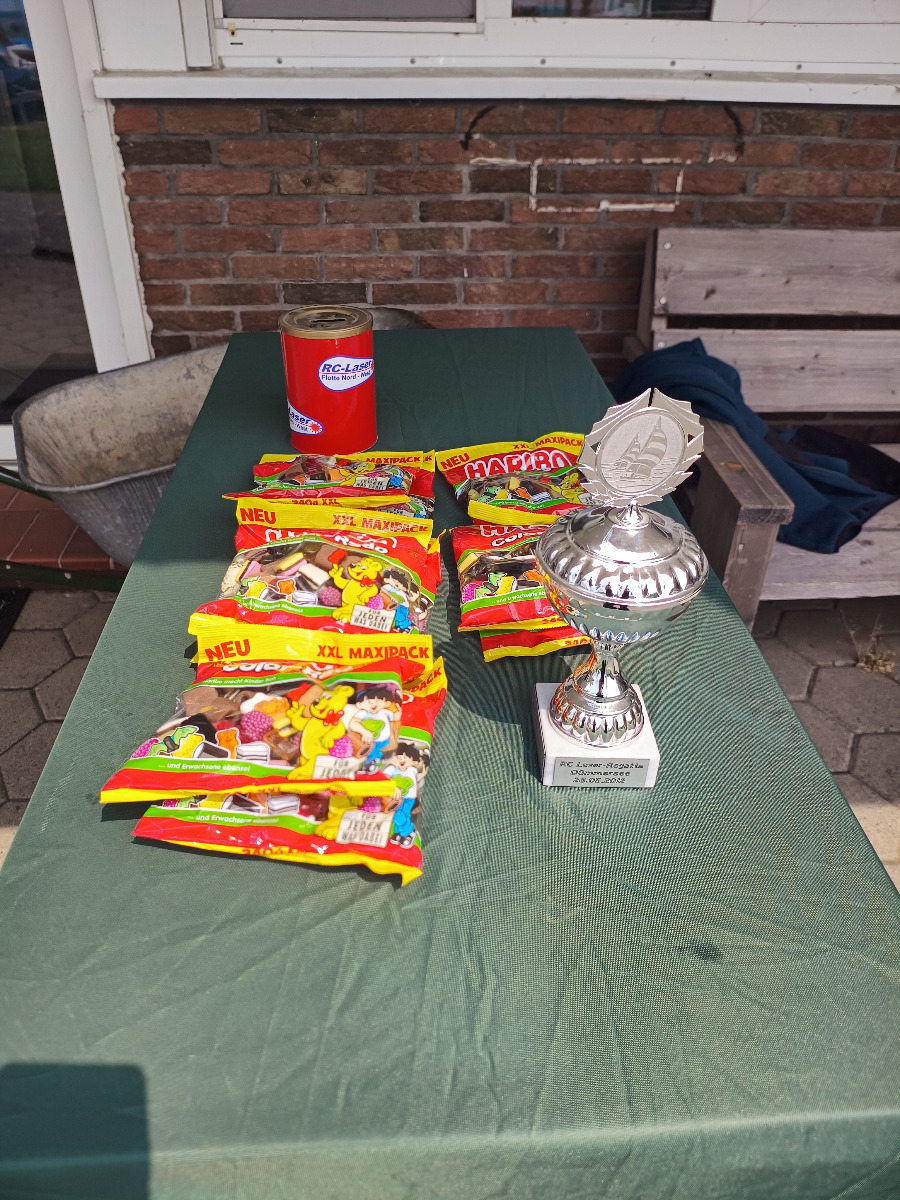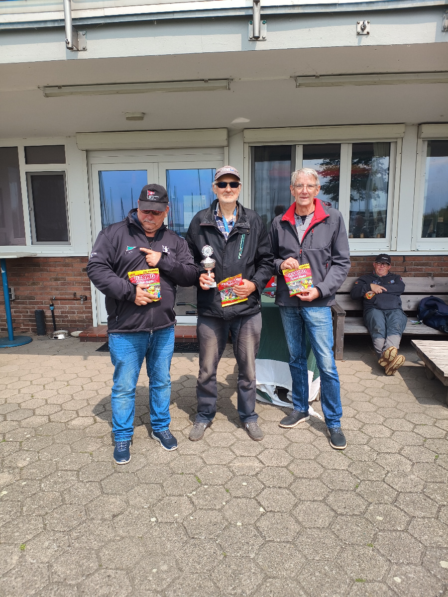 Trotz Böen und Welle war es eine sehr faire Regatta und bei Kollisionen wurde sich umgehend entlastet. Nach acht Läufen beendete der Regattaleiter die Regatta und um 14.45 Uhr fand die Siegerehrung am Clubhaus des SCD durch Horst Meyer statt. Horst hatte für jeden Teilnehmer eine „Süße Tüte“.