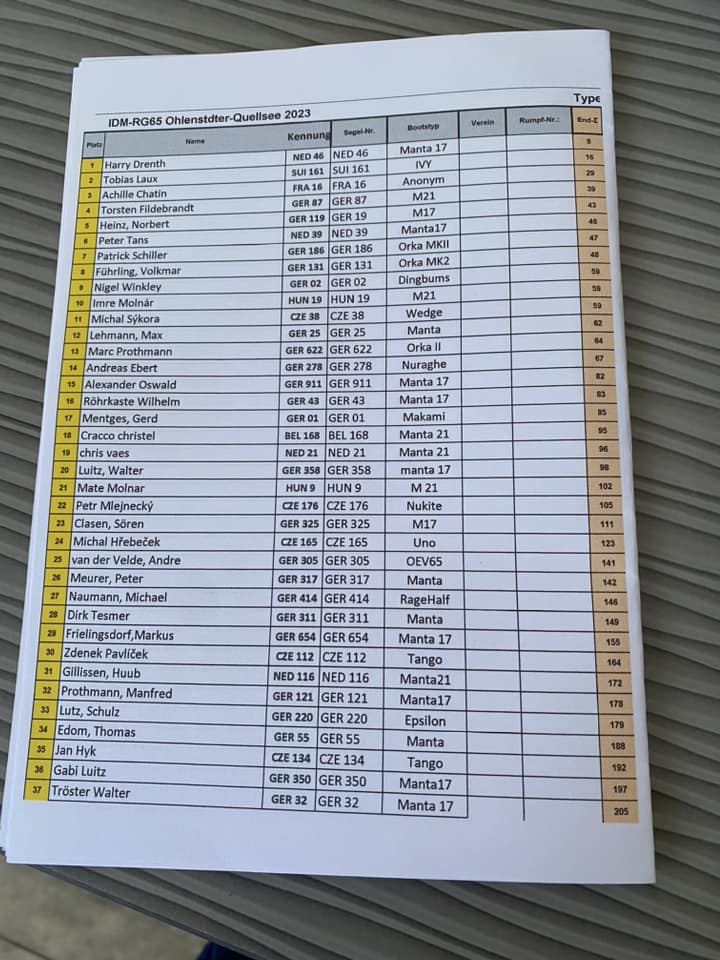 bislang haben sich 35 RG-65 Segler zur Internationalen Deutschen Meisterschaft RG65 2023 bei uns am Ohlenstedter-Quellsee angemeldet.