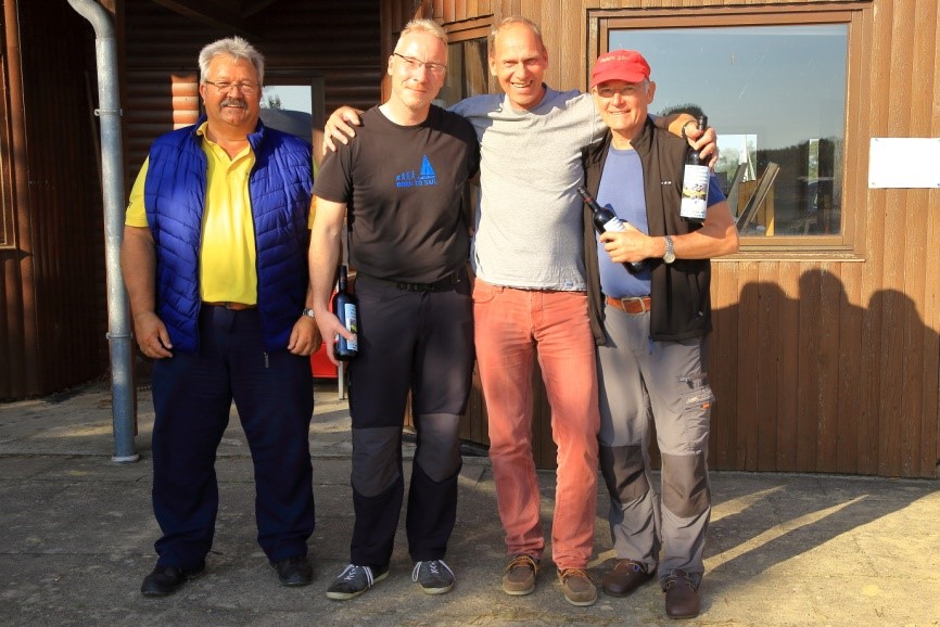 Bei Tommy, weil der Bau seiner neuesten YOVOTO - 2 so viel Zustimmung erfuhr und Thomas Edom gleich mit ihr sehr gut klar kam und weil inzwischen mehr als ein Viertel der Teilnehmer seine Schiffe fahren. Carsten Behrje war ebenfalls angetan von den Segeleigenschaften seiner neuen Yovoto – 2: “Die lässt sich viel einfacher als mein alter Sailfriend segeln!“