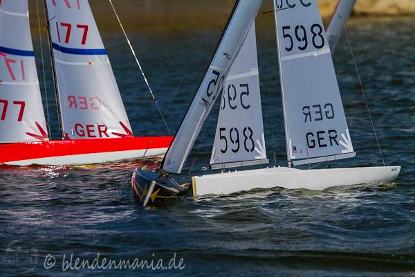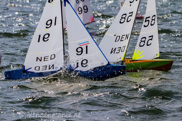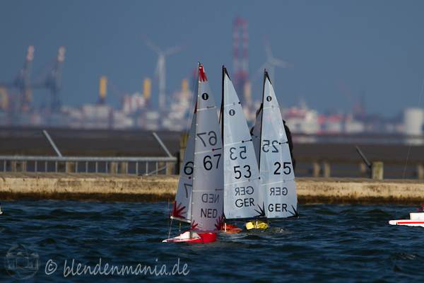 Nun zum eigentlichen Hauptteil unserer Reise in den hohen Norden, die Deutsche Meisterschaft der IOM auf der Nordseelagune. Wir konnten ab Mittwochmittag nach Herzenslust segeln und das bei Bedingungen, wie wir Segler aus Süddeutschland sie auf keinem unserer Reviere antreffen. Super Wind, herrlicher Sonnenschein und eine echt freundschaftliche Stimmung unter den Seglern. Zum Training am Donnerstag muss ich noch etwas loswerden. Der Veranstalter stellte uns Seglern freundlicherweise das Revier zur Verfügung, damit wir dort trainieren können um uns mit den dortigen Windverhältnissen vertraut zu machen. Wir hatten von Max die Startmaschine, die Bojen waren gelegt und wir sprachen uns ab, welchen Kurs wir segeln wollten. Es war also alles bestens angerichtet für ein gutes Training. Leider gab es aber einige Segler, die immer wieder ihren eigenen Kurs festlegten und segelten, was dazu führte, dass es zu einigen Karambolagen kam, die ganz schön heftig waren. Ich finde es sehr schade, dass bei so einem Training die Regeln zu wenig beachtet werden und wild durcheinander gefahren wird. Entschuldigung, aber das ist meine Meinung. Es kann einfach nicht sein, dass Segler ihre Boote aus dem Wasser nehmen, weil das Risiko einer Beschädigung zu groß ist.“