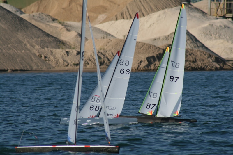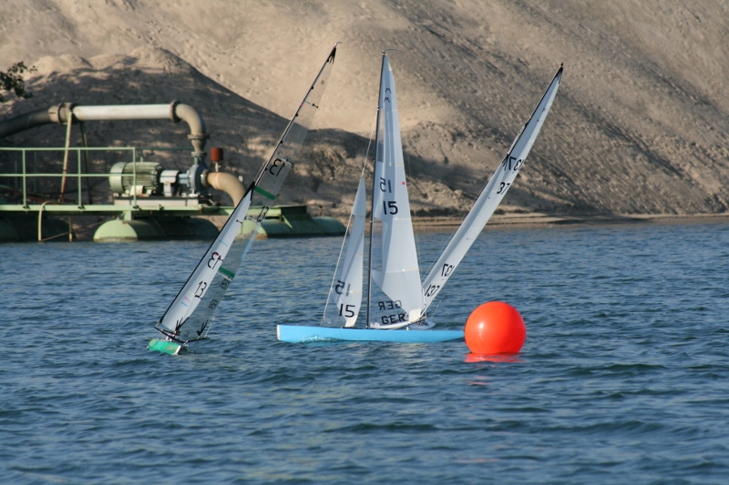 Auch wenn der Wind nicht immer optimal war, konnten auf dem Wasser allerhand spannende Wettfahrten durchgeführt werden. Am Ende wurde Yogi verdient Deutscher Meister der Marblehead Klasse. Zitat Nigel Winkley aus dem Forum: “ Die ersten Wettfahrten am Freitag gehörten noch mir, aber am Samstag hat Yogi einen Gang hoch geschaltet und mit erstklassigem Timing am Start und konstantem, taktisch gutem Segeln, schnell einen Vorsprung ausgebaut, der uns alle nur noch um Platz 2 segeln ließ.“ oder auch Gerhard Schmitt:“ Ich konnte meinen Titel von 2013 nicht verteidigen, irgendwie wollte die gute, alte Margo, mit der ich 2013 bei Leichtwind in Seeburg erfolgreich war, dieses Mal nicht bei ähnlichen Windbedingungen. Bei dem starken Wind vom