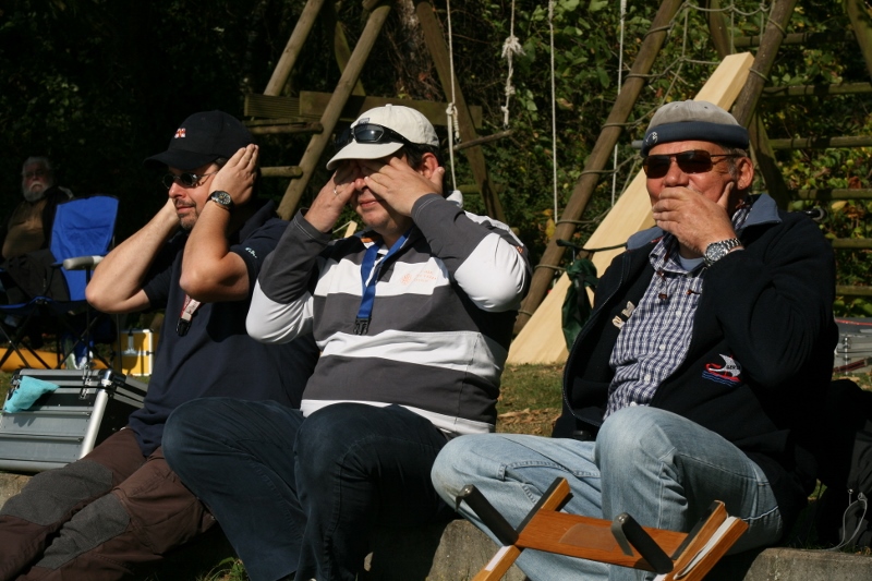 Der Wind kam, wenn überhaupt, jetzt von rechts hinten etwas über die Bäume und so mussten Heinz und Dieter immer wieder den Kurs anpassen. Wir starteten einige Versuche noch einen Lauf durchzuführen, aber Heinz und Dieter brachen die Läufe immer wieder, wegen unfairer Bedingungen, ab. Am Ende konnten wir gerade noch einen Durchgang absolvieren und aus Sicht des Autors hätten wir darauf auch gerne verzichten können.