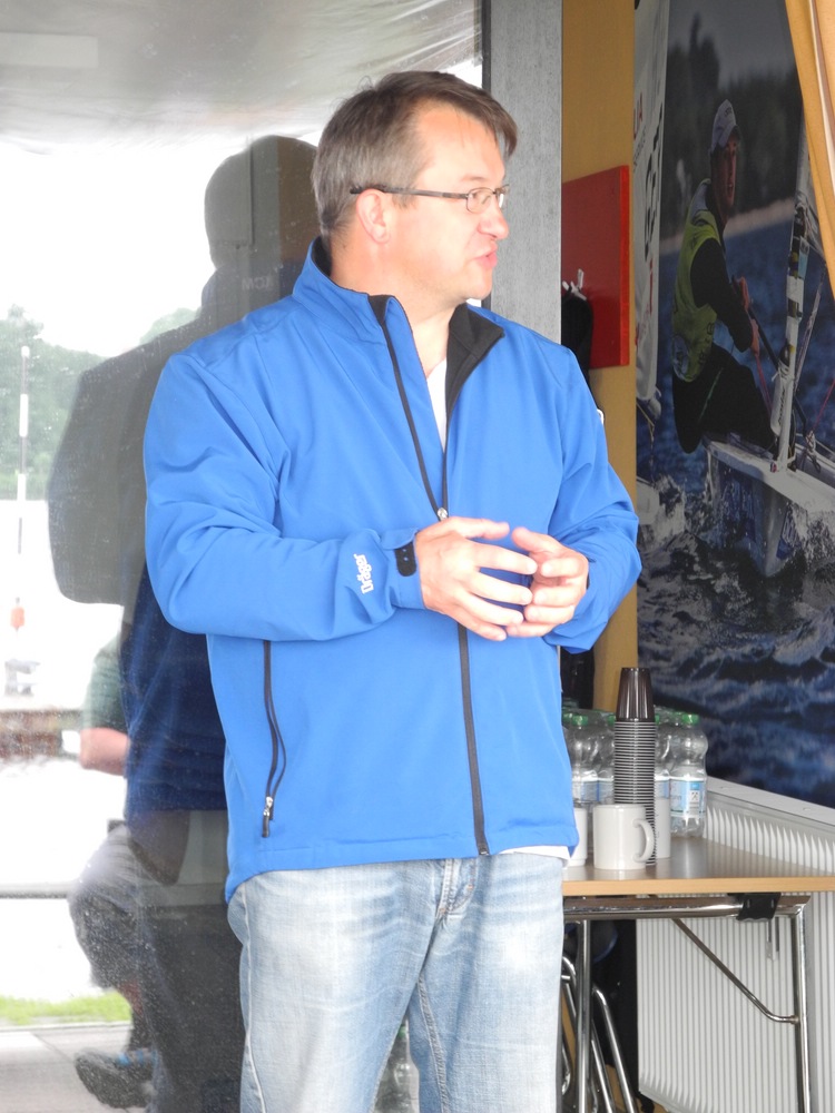 Der Wind blies auflandig, aber leider die meiste Zeit direkt von gegenüber, so dass wir mit vielen Winddrehern und Verwirbelungen kämpfen mussten. Dazu kamen Drücker, die öfters ein B-Rigg verlangten, wer aber umgeriggt hatte, konnte mit der verkleinerten Segelfläche keinen Sieg einfahren. Es waren eindeutig die vorne voluminöseren Schiffe im Vorteil. Jens´Tests, auch seine neue, gehörten dazu. Nicht allen gelang es, ihr Boot auf die kurze Welle einzustellen, vor allem dann, wenn zwischendurch der Wind recht schwach wurde.