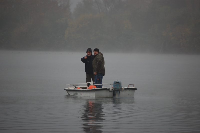 Der Nebel war verschwunden und der Kurs konnte neu verlegt werden, mit einer Stunde Verspätung konnten Jörg Grahl und ich dann den ersten Lauf starten, durch die geschrumpften Teilnehmerzahl, entschieden wir dann in einer Gruppe zu segeln. Anfangs pendelte der Wind und kam streifig über den See. Doch nach dem dritten Lauf, kam der Wind schön aus der besten Richtung für den See und der Kurs konnte dann größer gemacht werden.