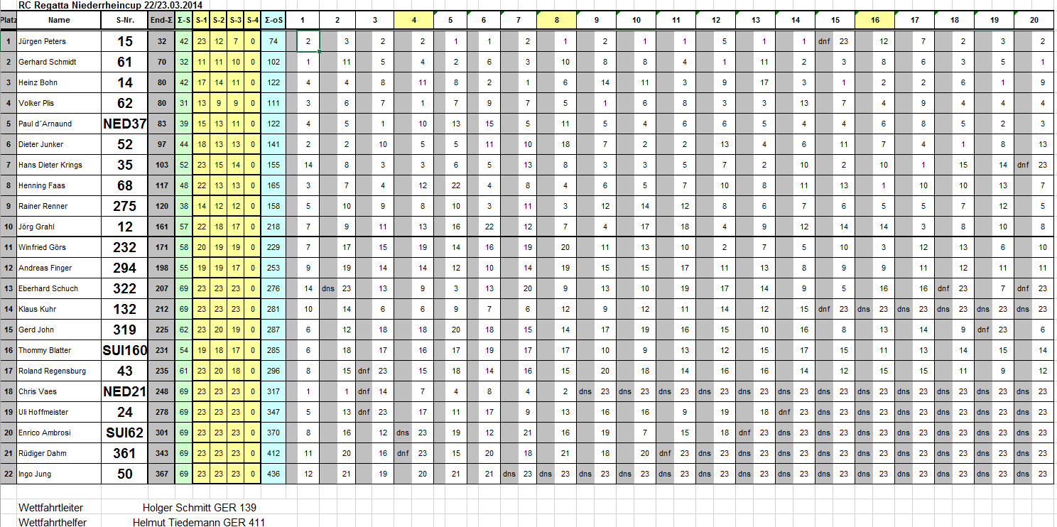 Es hatten 27 Segler gemeldet von denen 22 Segler am Samstagmorgen bei sehr kaltem Wetter auch antraten. Besonders gefreut haben wir uns über 2 aus der Schweiz angereiste Segler.