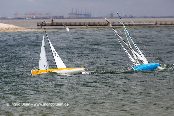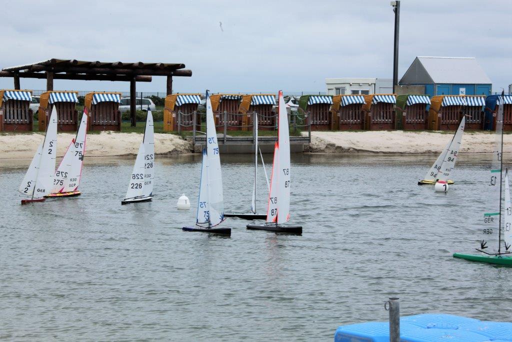 Mit 15 Startern hatten wir ein schönes Teilnehmerfeld. Sechs Segler waren das erste Mal in der Lagune. Von ihnen waren Nils Asmussen / Berlin und Ralf Schnur / Huntlosen Wiedereinsteiger in die M-Bootszene. Leider gab Ralf wegen Fernsteuerungsproblemen (Spectrum) am 1. Tag auf. Nils konnte sein Ruderservo noch einmal retten, so dass er am Freitag wieder dabei war, aber auch nur noch 6 der 9 Läufe. Er sieht die Optimierung seiner Paradox auf einem guten Weg und freut sich auf die nächste Regatta.
