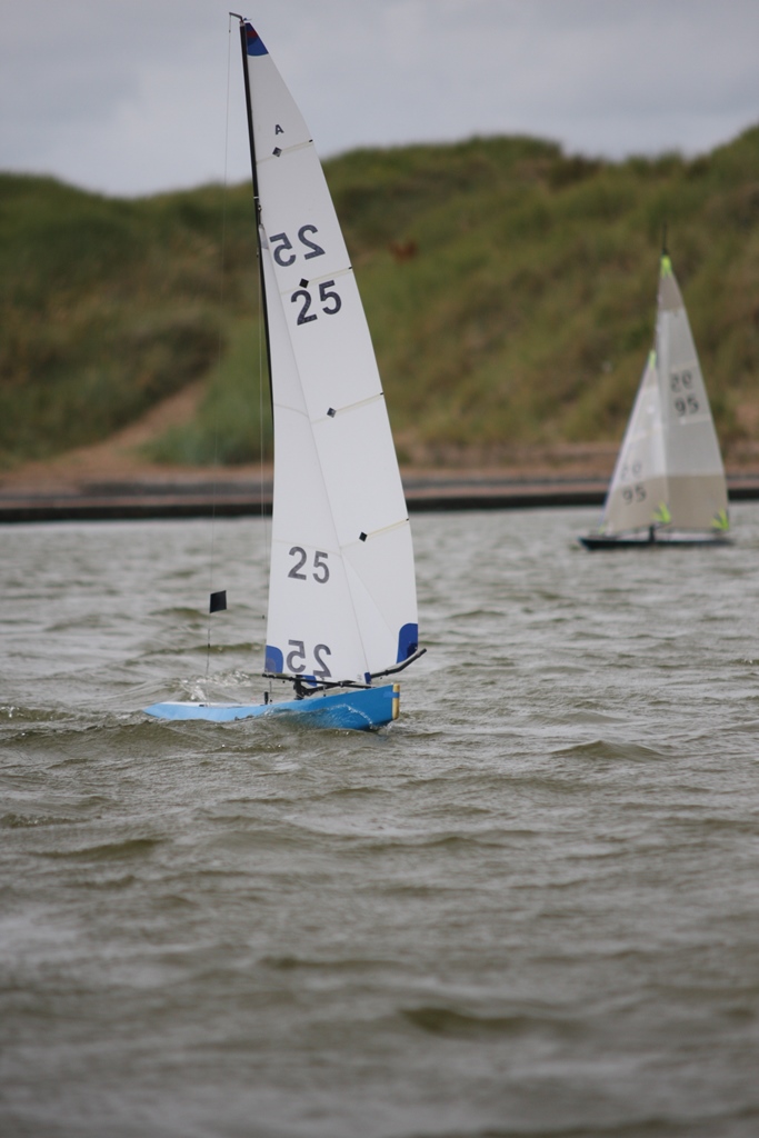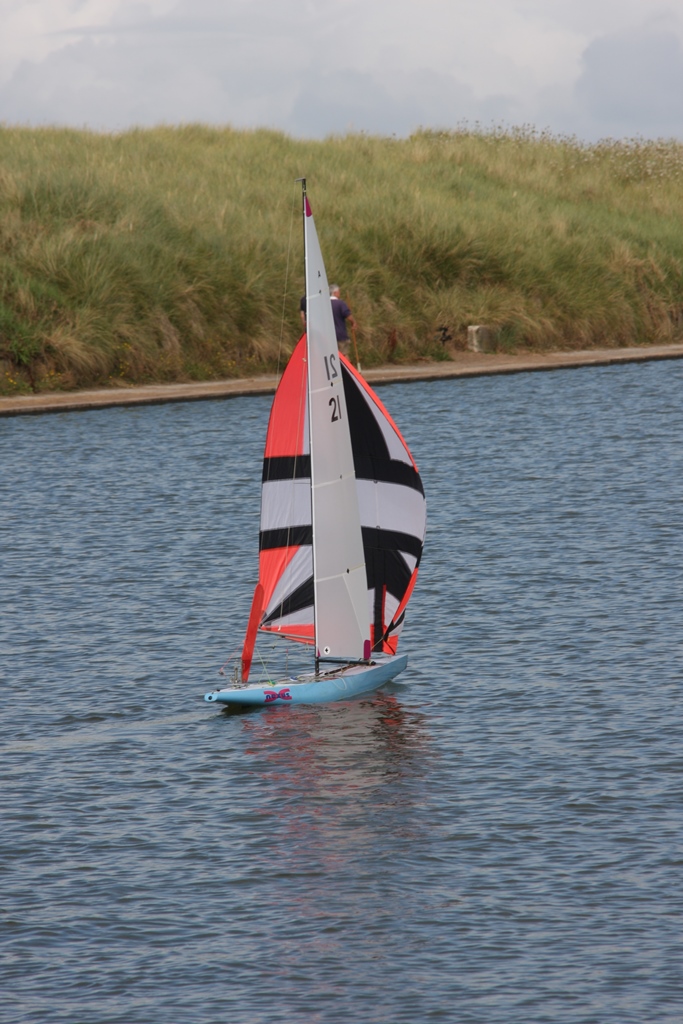 Am nächsten Morgen (schon wieder so ein herrliches englisches Frühstück) ging es dann endlich los. Nigel hatte mir ein älteres aber durchaus konkurrenzfähiges Boot eine „Martini 2“ besorgt, er selbst fuhr eine „Sweet 9“ mit zwei getrennten Winden für Vor- und Großsegel sowie Stellservos in den Bäumen. Nigel hatte zuletzt in Manor Park einen Platz unter den ersten 10 erreicht und wollte dieses Ergebnis hier unbedingt halten.
