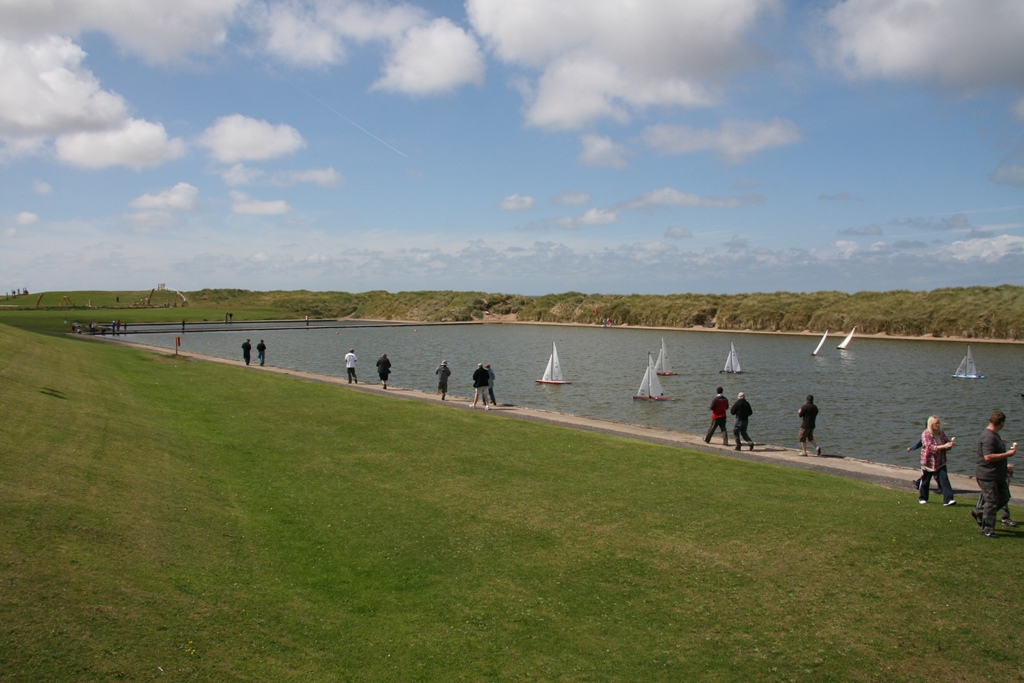 Vor den RA Nationals fanden dort die Vane Nationals der A-Klasse (also ohne Fernsteuerung mit Windsteuerung) statt und so hatte ich Gelegenheit zum ersten Mal in meinem Leben solchen Rennen zuzuschauen. Ganz davon abgesehen das A-Klassen Boote beindruckende Modelle sind (2,20 Masthöhe, 1,80m Rumpflänge und bis zu 23kg Gesamtgewicht) war es bewundernswert mit welcher Präzision die einmal eingestellten Boote das ca. 300m lange Becken in Fleetwood absegelten. Ebenfalls ein seltener Anblick für mich war die Vorwindstrecke, wenn alle riesige Spinnacker setzten und dann das Becken entlangschossen. Die Steuermänner auf beiden Seiten des Beckens mussten im Laufschritt mitrennen falls das Boot zu nahe ans Ufer kam. Das schien mir doch eine anstrengende Angelegenheit zu sein. An den folgenden Tagen musste ich lernen, dass auch bei den ferngesteuerten Varianten mitrennen am Ufer angesagt war. Da ich ständig Auf- und Abstieg, konnte ich an ca. 40 Läufen teilnehmen. Pro Lauf musste man mindestens 3-mal das Becken ablaufen also in Summe waren es ca. 40 km. Am Abend gingen wir, nach einem kurzen Abstecher in den Pub, zu unserem Hotel, das sich als sehr gepflegtes und preiswertes „Bed and Breakfast“ erwies.