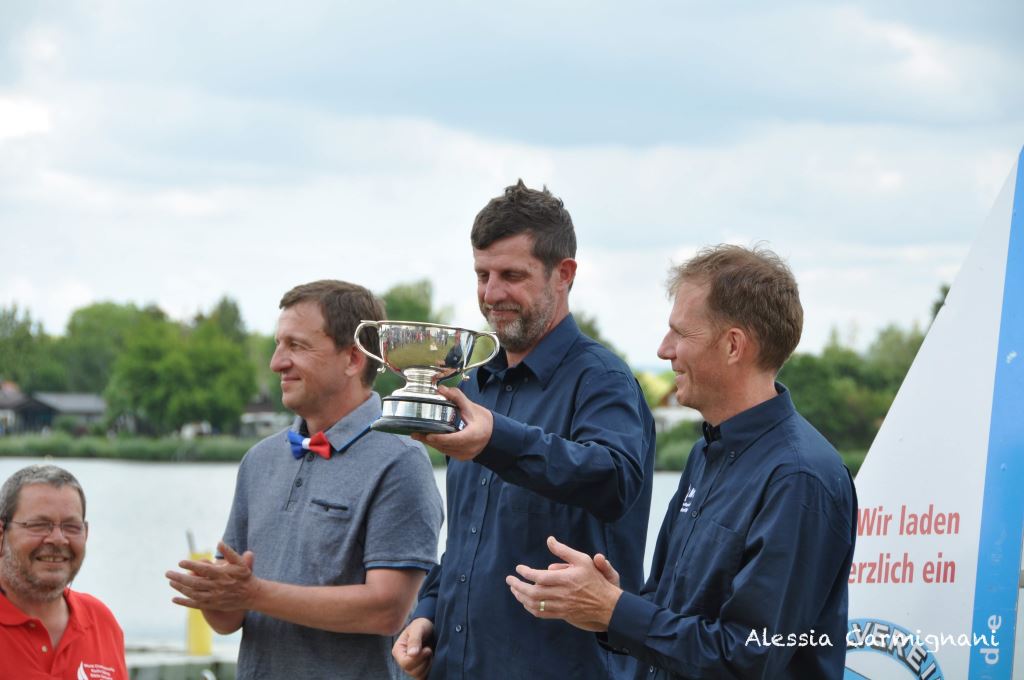5. Tag, 01.06.2018: Am letzten Tag der WM begrüßte der Riedsee die Teilnehmer noch einmal mit einer schönen Briese aus Süd und so konnten die letzten Wettfahrten zügig begonnen werden. Brad Gibson war aber nicht mehr zu schlagen und gewann souverän die Durchgänge 11 und 12. Am Ende versuchten Henning Faas und sein Team noch einen letzten Lauf durchzuführen scheiterten aber leider um 5 Minuten am Zeitlimit. Somit ist auch in der Marbleheadklasse der alte und neue Weltmeister Brad Gibson GBR mit 22 Punkten vor Christophe Boisnault FRA mit 29 Punkten und Peter Stollery GBR mit 38 Punkten.