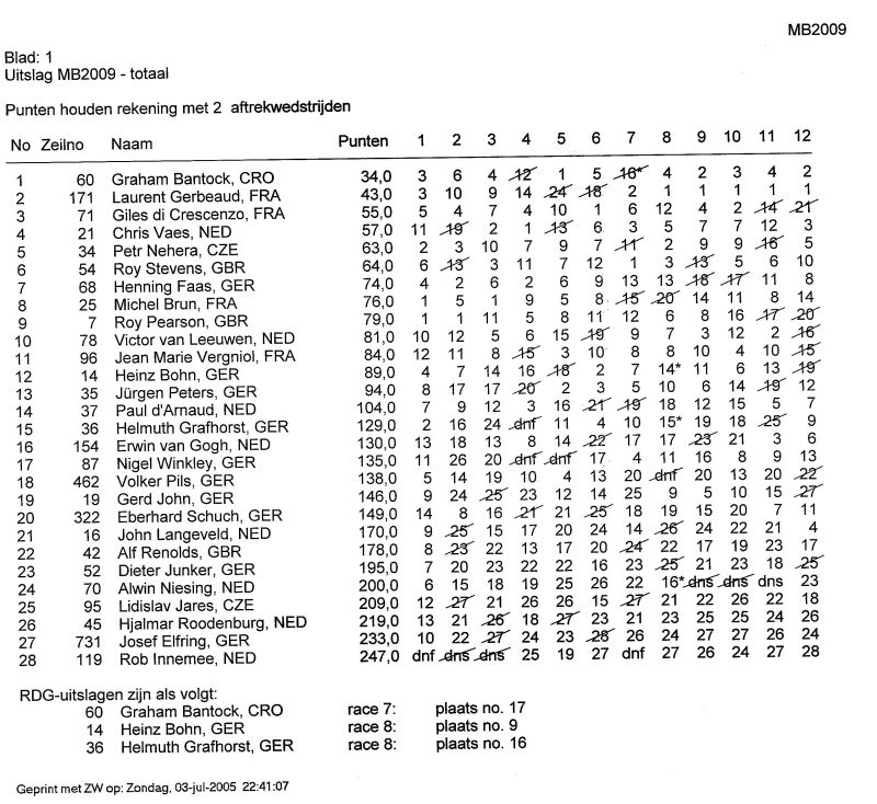 Auf Platz 15 folgte Helmut Krahforst (Poppppelsche) der leider auch nicht an seine Schwachwinderfolge mit der Joker anknüpfen konnte. Nigel Winkley war und konnte auch mit seinem 17. Platz nicht zufrieden sein, macht auf mich aber schon wie in den vergangenen 8 Monaten einen unerklärlich müden Eindruck. Auf den folgenden Plätzen lagen Volker Pilz, Gerd John und Eberhard Schuch denen dann auf Platz 23 Dieter Junke (der zahnlose – Schwerttt, Ruddder und druff) und auf Platz 27 Josef Elfring folgten.