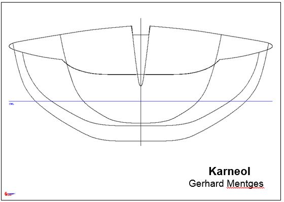 Formstabilität ist also ein mir wichtiger Punkt und der weitere mir wichtige Punkt ist wenig Tiefgang zwecks günstiger Druckverteilung und damit geringer Rumpfwiderstand. Ob diese Zielsetzungen so greifen wird die Zukunft zeigen, in jedem Fall hat die Karneol gegenüber den anderen Schiffen bei viel Wind ein deutlich höheres Geschwindigkeitspotential. Der oben erwähnte D/L Koeffizient liegt bei 50 und ist damit der kleinste Wert.